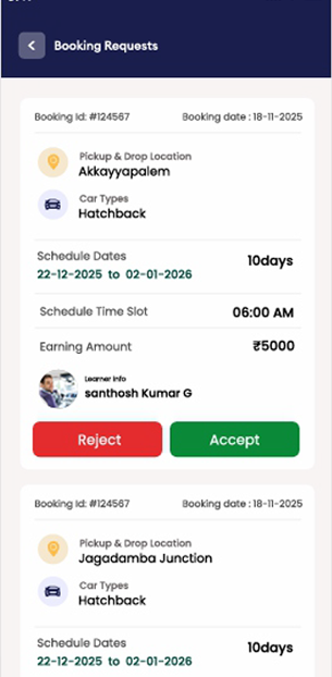 DrivKaro is an on-demand car driving learning platform designed to make learning to drive simple, safe, and convenient. We connect learners with nearby professional driving Trainers through an easy-to-use mobile app. Whether you are a beginner or looking to improve your car driving skills, DrivKaro lets you book a verified Trainer, learn at your preferred location, and gain real-road driving experience. Our goal is to offer flexible, practical training that fits your schedule.